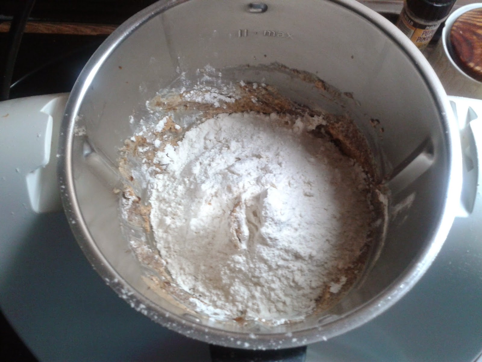 - Seguimos con la harina tamizada y velo 3 o 4 sin añadir tiempo yo asta me se a integrado bien